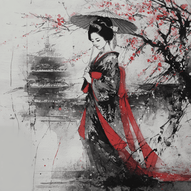 Eine Geisha (芸者) ist eine traditionelle japanische Unterhaltungskünstlerin und Gastgeberin, die in vielfältigen Künsten ausgebildet ist. Das Wort Geisha bedeutet wörtlich „Person der Künste“ – gei (芸) steht für Kunst und sha (者) für Person. Geishas sind vor allem für ihre eleganten Auftritte in Seidenkimono, ihr weiß geschminktes Gesicht und ihre Fähigkeit bekannt, Gäste mit Tanz, Musik, Gesang, Konversation und Teezeremonie zu unterhalten. Sie verkörpern Anmut, Kultur und Tradition und sind ein einzigartiges Symbol der japanischen Kultur.